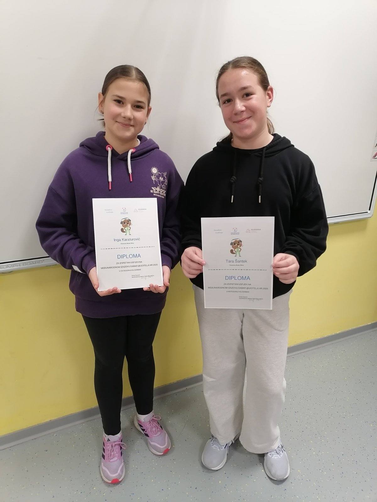 I ove su godine učenici naše škole sudjelovali u izazovu Dabar kojim se promiče informatika i računalno razmišljanje. U periodu od 11. do 14. studenoga na satu informatike učenici su rješavali izazovne zadatke. Čestitamo svim učenicima na sudjelovanju, a posebne čestitke učenicama 6.b razreda, Ingi Karaturović i Tari Šantek. Inga i Tara su dobitnice zlatne diplome i digitalne značke za izniman uspjeh jer su svojim rezultatom ušle među 10% najuspješnijih učenika u Republici Hrvatskoj.