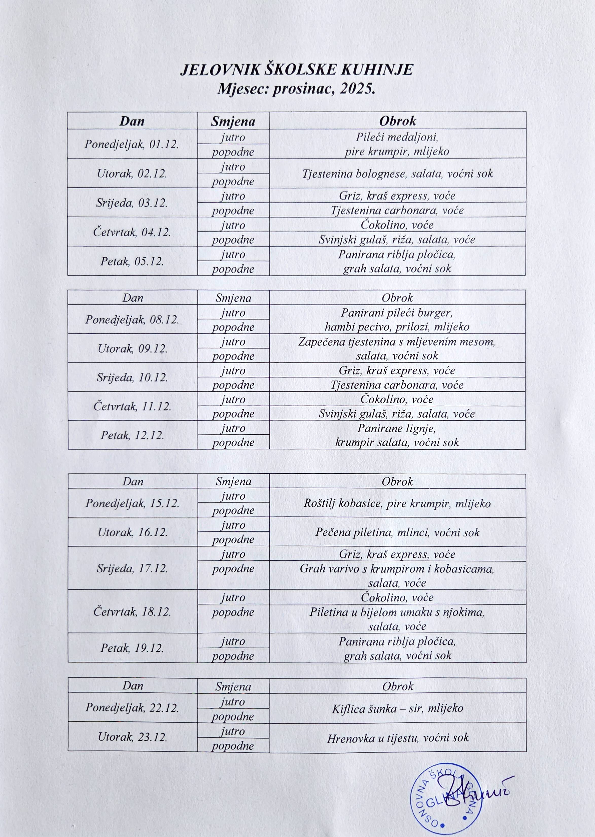 Školska godina 2025./2026. počinje 08. rujna 2025. godine po sljedećem rasporedu: