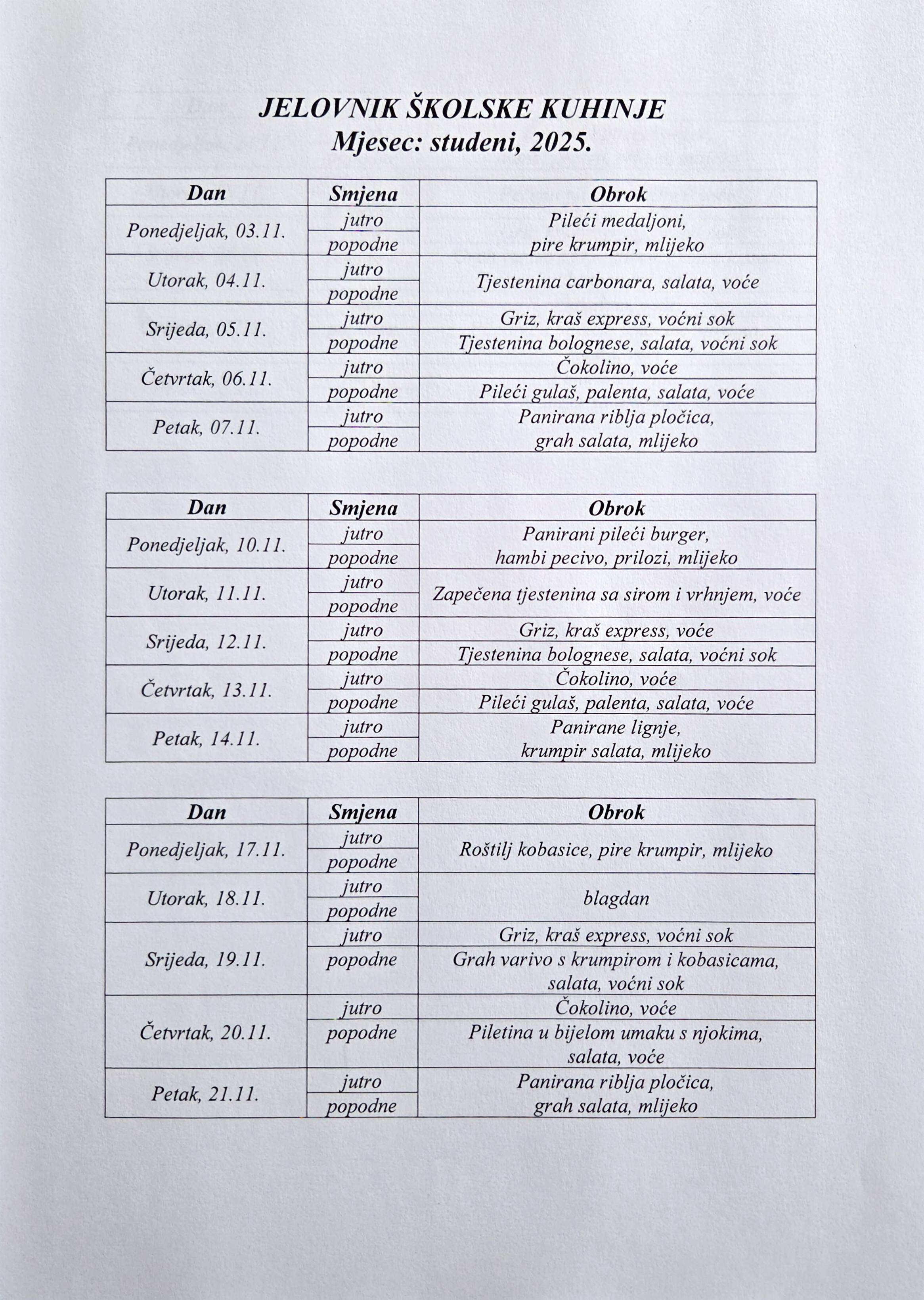 Školska godina 2025./2026. počinje 08. rujna 2025. godine po sljedećem rasporedu: