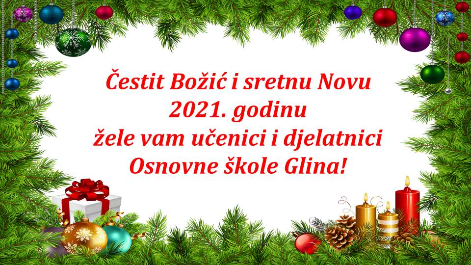 Svim učenicima, djelatnicima i njihovim obiteljima želimo Čestit Božić i sretnu Novu 2021. godinu.