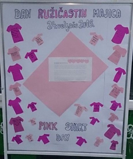 Učenica 8.c Nika Krizmanić održala je u utorak kratko predavanje na kojem nas je kroz zanimljivu prezentaciju upoznala što je to Dan ružičastih majica?