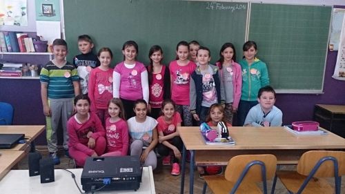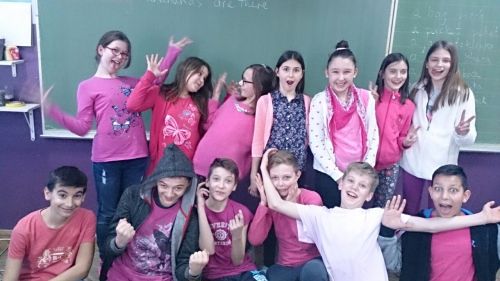 Danas je u našoj školi na prijedlog učenika 8.c razreda i njihove razrednice učiteljice Vesne Netoušek obilježen Dan ružičastih majica. Učenici i djelatnici obučeni u ružičaste majice jasno su poručili da su protiv nasilja među vršnjacima.