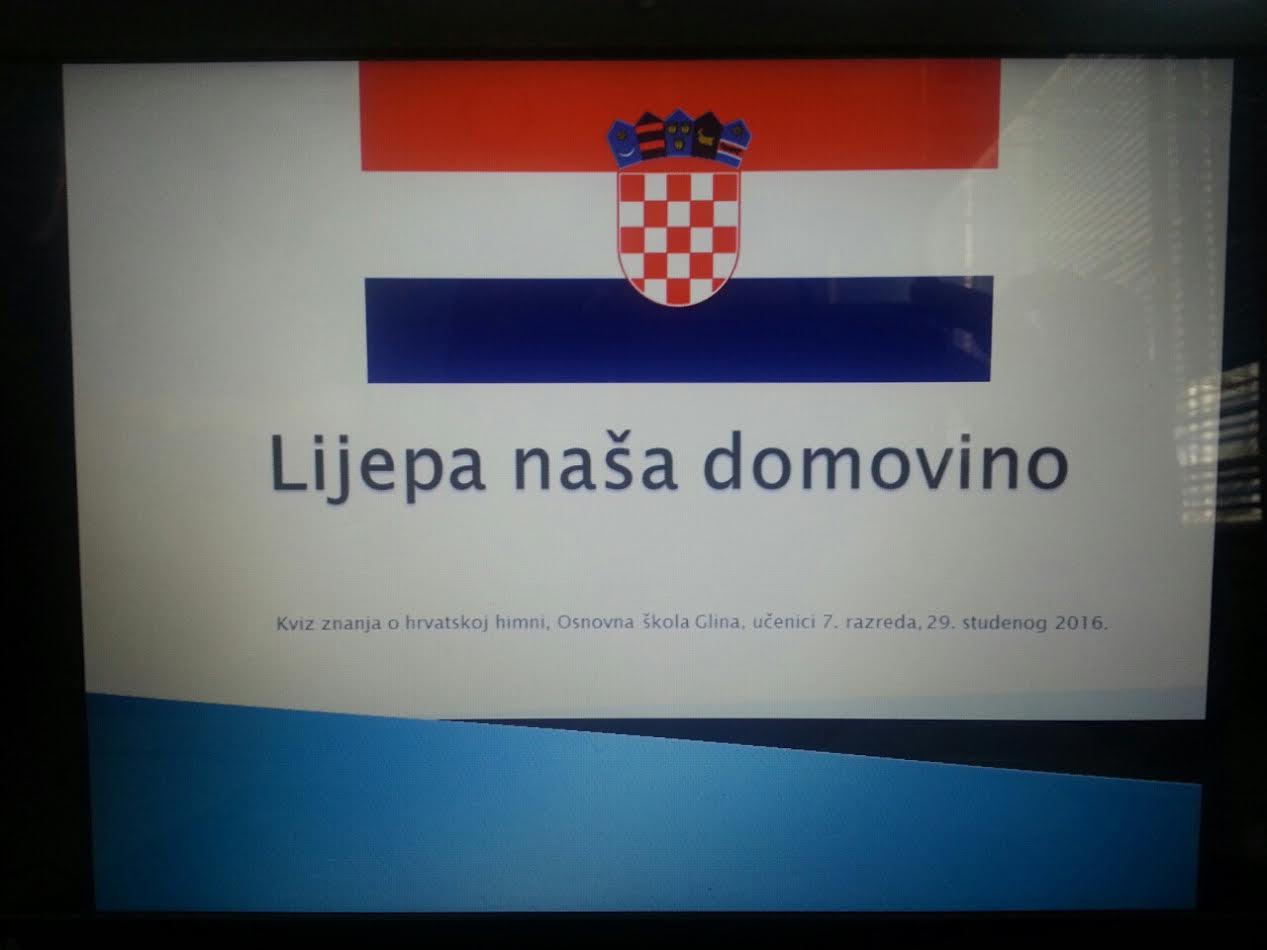 29. studenoga učenici sedmih razreda naše škole sudjelovali su u kvizu znanja o hrvatskoj himni Lijepa naša domovino.