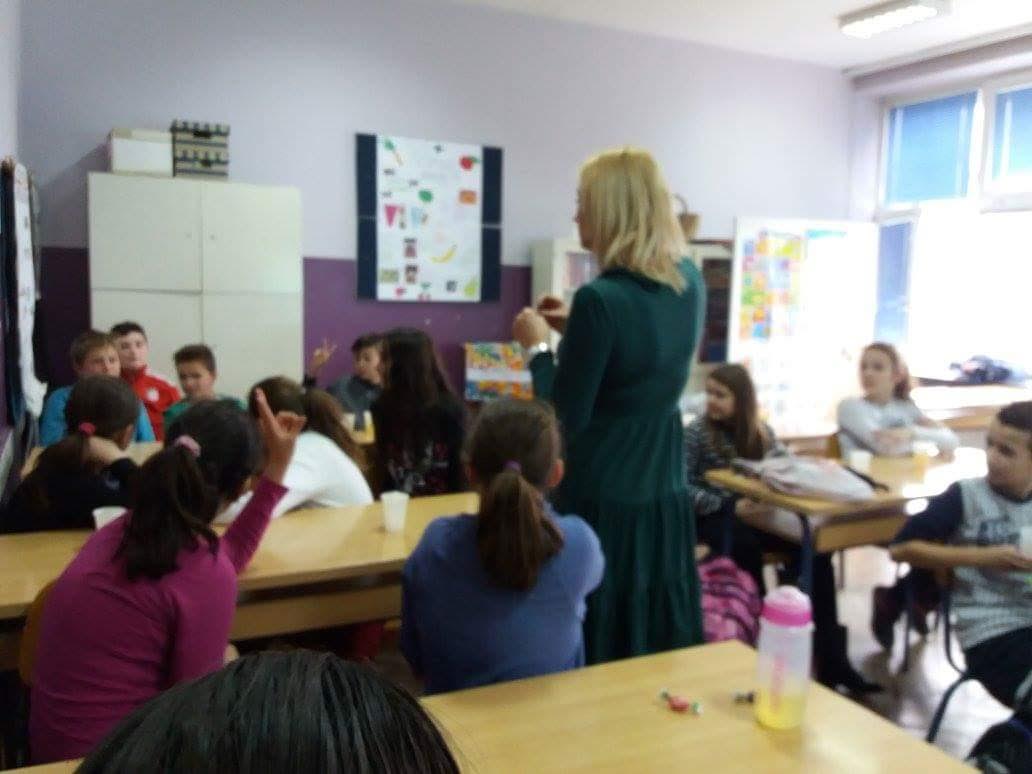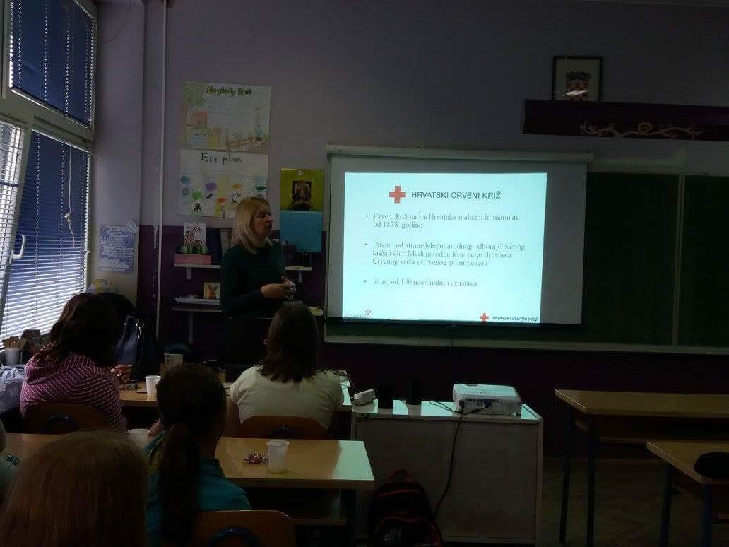 Ravnateljica je učenike upoznala s djelatnostima Crvenog križa, važnosti volontiranja, kako možemo pomoći jedni drugima i svakodnevnim situacija s kojima se susreću. Ono najvažnije što su Mali pomagači naučili iz predavanja je kodeks ponašanja i etičnost tijekom pomaganja drugima. Gospođa Cestarić je učenike iznenadila poklonima iznenađenja, ali su njoj i učenici zajedno sa svojim voditeljicama u znak zahvalnosti uručili malu uspomenu na druženje. Svi članovi Kluba pomagača vesele se daljnjoj suradnji s djelatnicima i volonterima Crveenog križa Glina.