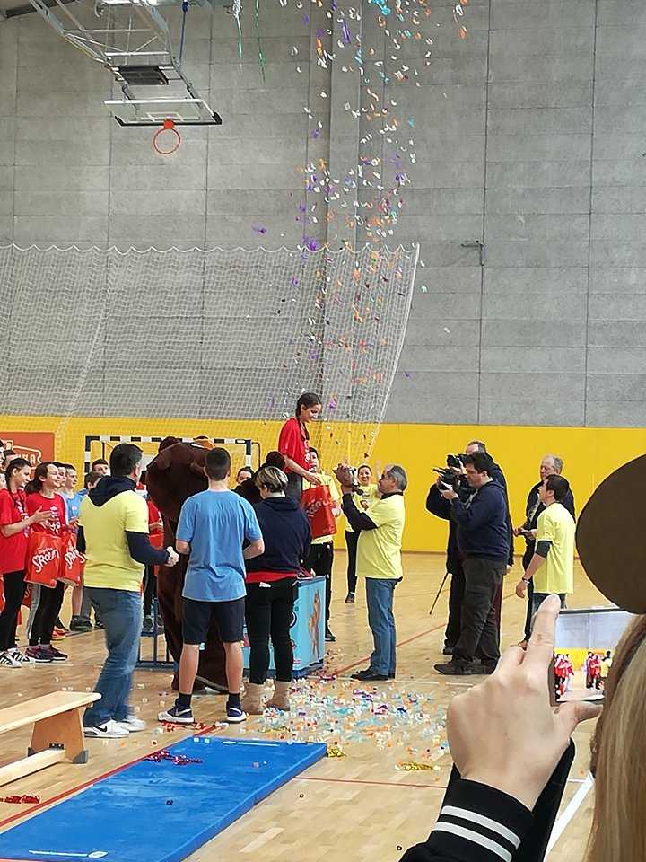 Svaki razred je dao jednog muškog i jednog ženskog natjecatelja. Natjecatelji su osvajali bodove u trčanju, skoku u dalj, izvođenju slobodnih udaraca na gol, pogađanju košarkaških obruča, potezanju užeta i štafetama. Kako podnijeti poraz, proslaviti pobjedu, fair navijati i natjecati se natjecateljima je pokazao vrsni mladi sportaš Borna Matić, juniorski reprezentativac u gimnastici iz Siska; sa svojim trenerom Georgijem Kazakovim, inače trenerom Športsko-gimnastičkog kluba Sokol iz Siska. Događaj su medijski popratile Sportske novosti, Mreža TV i internetska stranica Lino višebojca (www.lino.eu), a Podravka, Sportske novosti i HT su nagradili natjecatelje i sve učenike iz publike. Najbolji natjecatelji, koji su se plasirali na državno natjecanje su Anja Bobeta (6. c razred) i Vladimir Drakulić (8. a razred). Bila je ovo prilika za nezaboravnu zabavu, a u nastavku možete pročitati kratki intervju s našim gostom, mladom nadom hrvatske gimnastike Bornom Matićem.