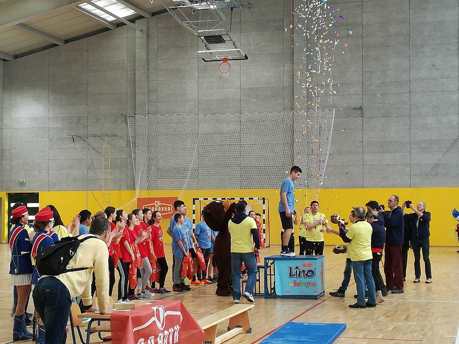 U četvrtak, 15. veljače 2018., naša je škola bila organizator županijskog Lino višebojca – natjecanja hrvatskih škola u kojem se nagrađuje pravi, pozitivan, sportski duh. U školi je od jutra vladala euforija, užurbano su se završavali navijački transparenti i očekivao početak u 12.00 sati. Prije početka natjecanja su učenici pokazali svoje kulturno-umjetničko stvaralaštvo, zborsko pjevanje i najbolji rad na temu „Svijet po tvom“ (Magdalena Pereković, 8.b). Vrlo brzo je sportska dvorana škole bila ispunjena glasnim navijanjem, pjesmom i bodrenjem natjecatelja.