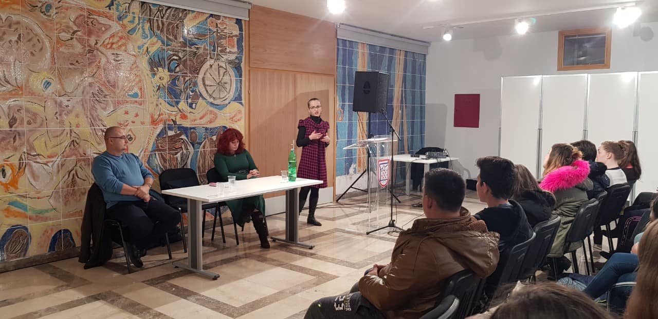 Predavanje je održano u organizaciji Grada Gline u suradnji s Hrvatskim zavodom za javno zdravstvo SMŽ i Policijske postaje Glina. Po završetku predavanja učenici su pogledali predstavu u izvođenju članova Marijine legije iz Petrinje.