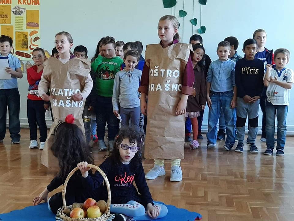 Povodom dana jabuka i Dana zahvalnosti za plodove zemlje u našoj područnoj školi održan je prigodni program i druženje s roditeljima i gostima. Učiteljice i učenici su ispekli kolače s jabukama i njima počastili goste. U sklopu programa, naše učenice su bili modeli za jesensku kolekciju rukotvorina koje su izrađene od prirodnina.