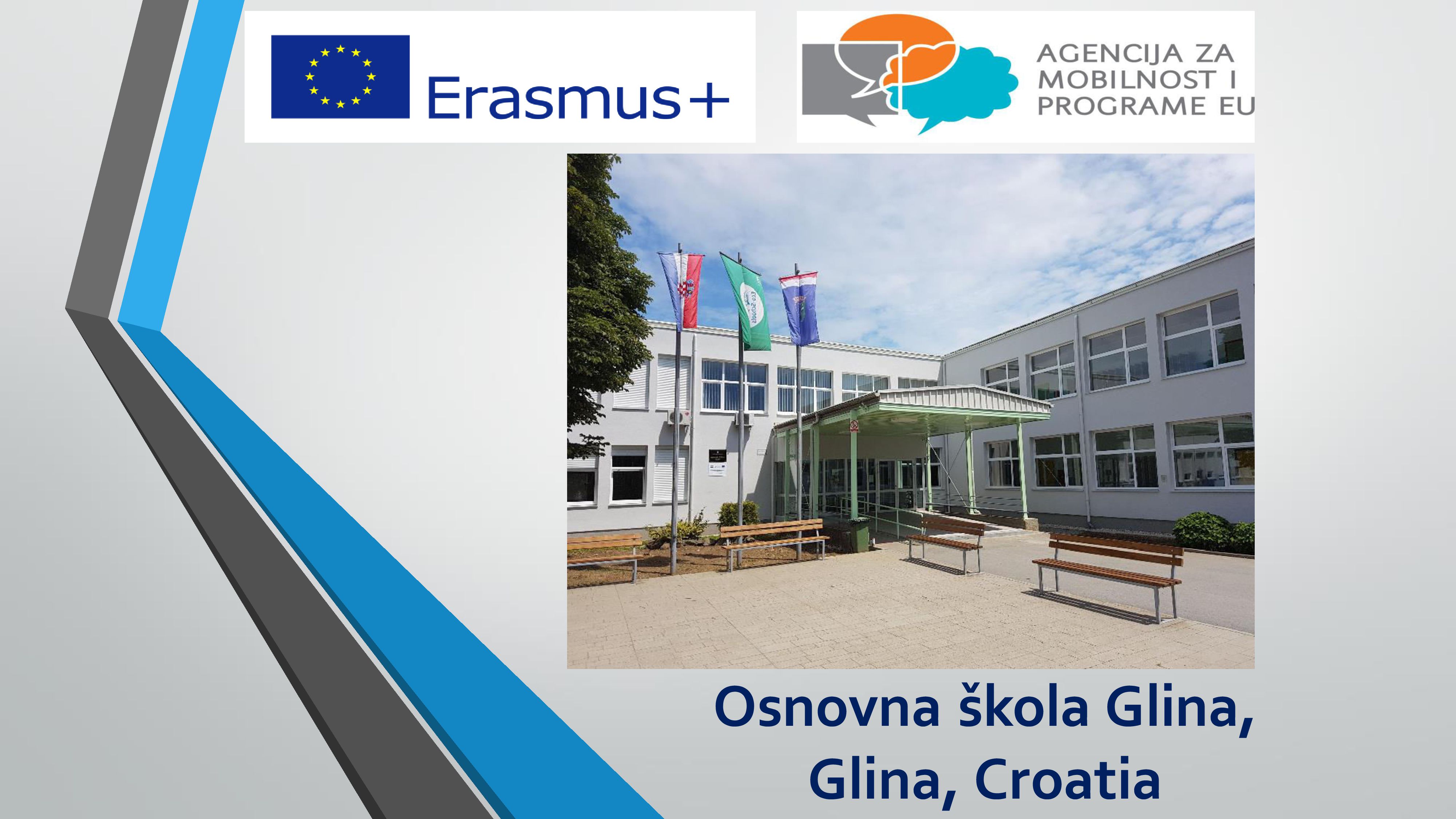Osnovna škola Glina od rujna, 2020 do kolovoza, 2023 sudjelovat će u Erasmus+ projektu "Healthy mind, body and environment". U ovom projektu škola će surađivati s još 4 europske škole iz Francuske, Grčke, Latvije i Španjolske.