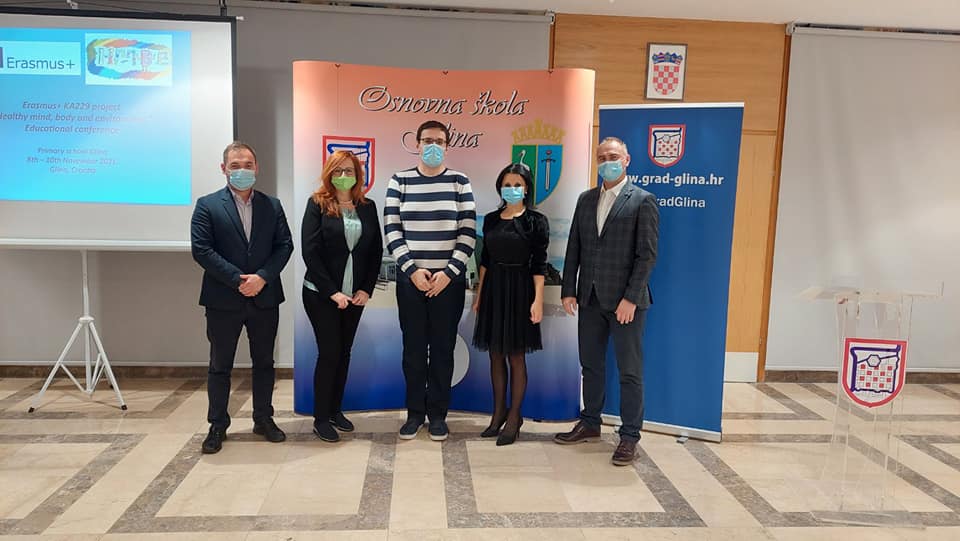 Osnovna škola Glina od 8. do 10. studenog 2021. bila je domaćin međunarodne obrazovne konferencije "Helathy mind, healthy body and healthy environment" u sklopu Erasmus+ KA229 školskog partnerstva. Na konferenciji su sudjelovali predstavnici partnerskih škola iz Francuske, Grčke i Latvije, predavači prof.dr.sc. Sanja Kalambura i doc.dr.sc. Ana Žnidarec Čučković iz Hrvatske i Paul Field iz Velike Britanije te učitelji naše škole. Učitelji iz partnerskih zemalja imali su priliku upoznati se s hrvatskim školskim sustavom, našom školom, hrvatskim jezikom kao i poviješću i ljepotama naše domovine i grada. Posjet učitelja iz partnerskih zemalja završio je posjetom NP Plitvička jezera.