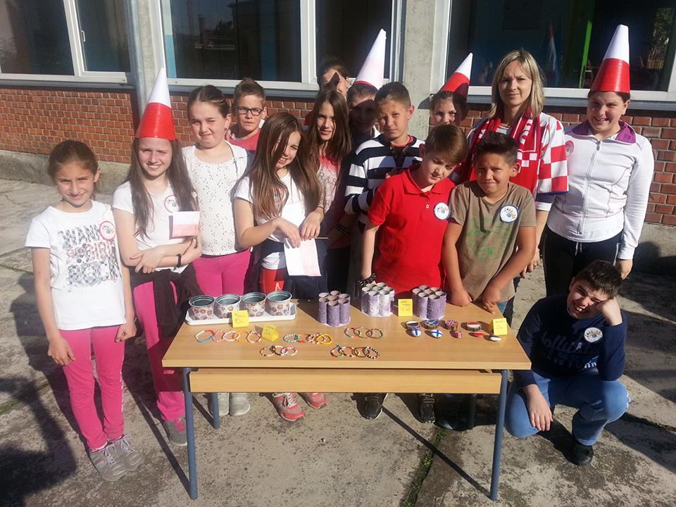 As a part of our project activities on May 16th we organized European market day. We celebrated European day with activites where we learned about european countries, their capitals, flags and much more. Also we did maths activities as a part of numeracy methods we had been working on. Students learned about european currencies and different measurements and how to convert them. At the end we organized European market day where every class working on the project had thier stand with different products they made for sale. A lot of parents and other people from local comunity came to support our fair and they bought different products from our students. With the money gathered by selling products students and their teachers will buy necessities for their classrooms.