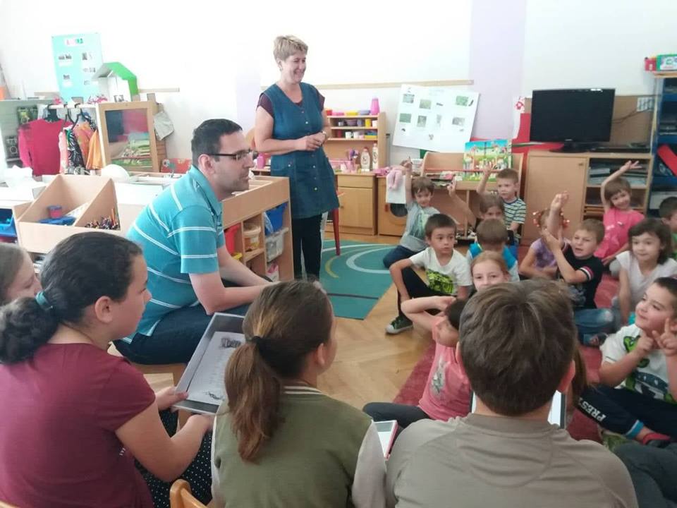 Ovom akcijom nastojalo se poticati kod djece predškolske dobi razvijanje ljubavi prema knjigama i čitanju. Djelatnici Osnovne škole Glina govorili su budućim prvačićima koji značaj knjiga ima, kakvih sve knjiga postoji, što sve možemo u knjigama pročitati te gdje se sve knjige mogu kupiti ili posuditi. Na taj način željeli smo osvijestiti kod djece od najranije dobi da im je knjiga dobar prijatelj iz koje mogu puno toga naučiti i novoga saznati. Učenici 5. razreda predškolskoj djeci čitali su zanimljive priče, pjesmice i igrokaze te im pokazali da je naučiti lijepo i izražajno čitati jako važno. Nakon provedene aktivnosti učenici su putem likovog izražavanja pokazali što su naučili.
