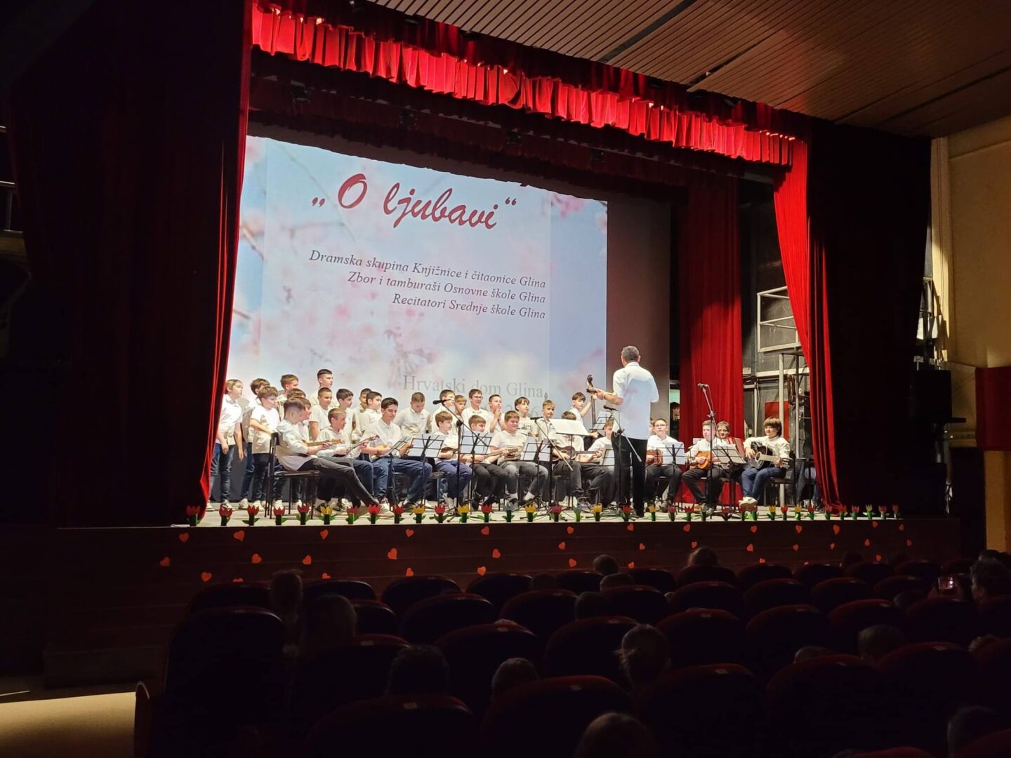 U srijedu, 11. ožujka 2026. u Hrvatskom domu Glina, u organizaciji Knjižnice i čitaonice Glina, održala se večer poezije, glume i glazbe pod naslovom “O ljubavi”. Uz članove dramske skupine Knjižnice i čitaonice, nastupili su i učenici OŠ i SŠ Glina. Naša škola predstavila se s dvije skladbe “Nemoj noći brzo proći” i “Croatio iz duše te ljubim” u izvedbi pjevačkog zbora i tamburaške skupine uz pratnju učiteljice Vlaste Ožaković. Učenike su pripremili prof. Ljerka Iharoš i učitelj Marijo Ožaković. Da su sve izvedbe bile odlične potvrdio je veliki pljesak publike koji je izvođače iskreno nagradio.